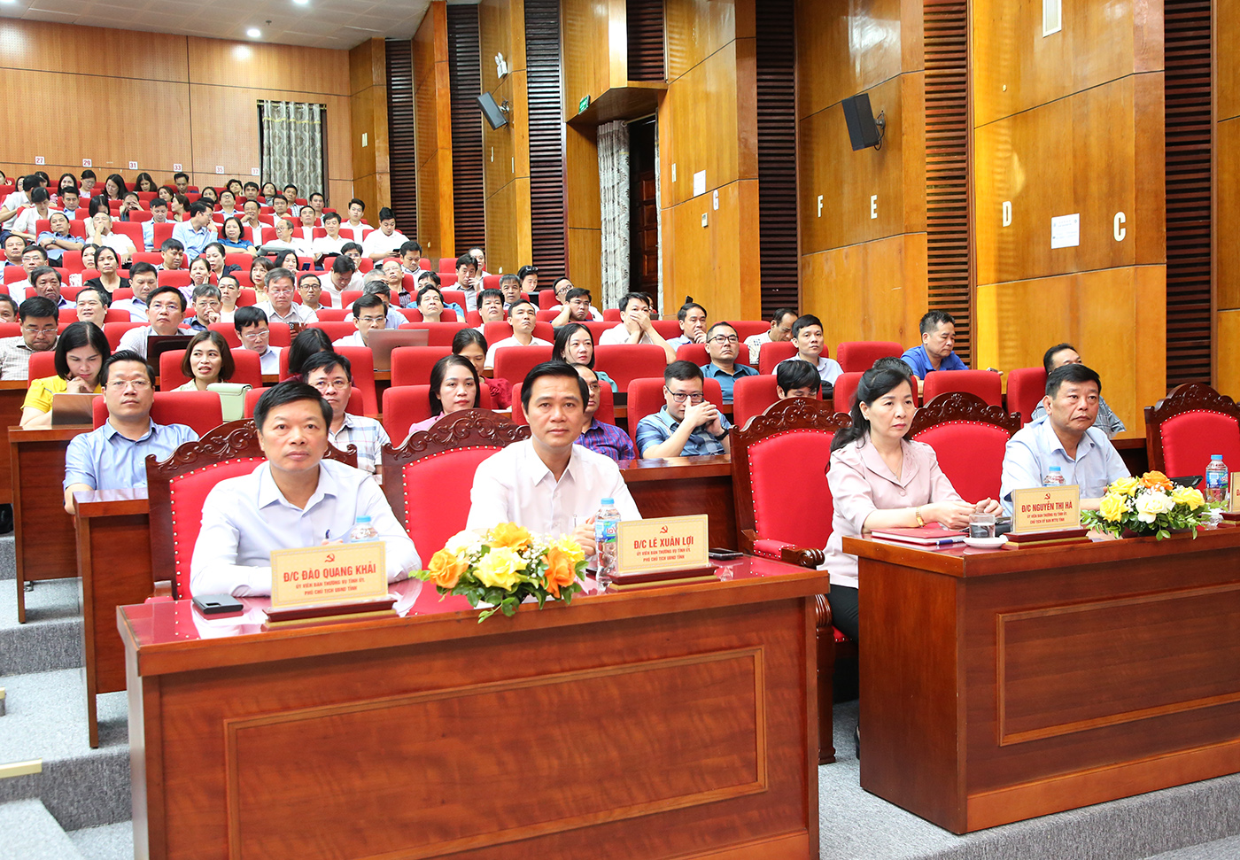 Từ trái qua: Phó Chủ tịch UBND tỉnh Đào Quang Khải; Phó Chủ tịch UBND tỉnh Lê Xuân Lợi; Chủ tịch Ủy ban MTTQ tỉnh Nguyễn Thị Hà; Phó Chủ tịch UBND tỉnh Ngô Tân Phượng.